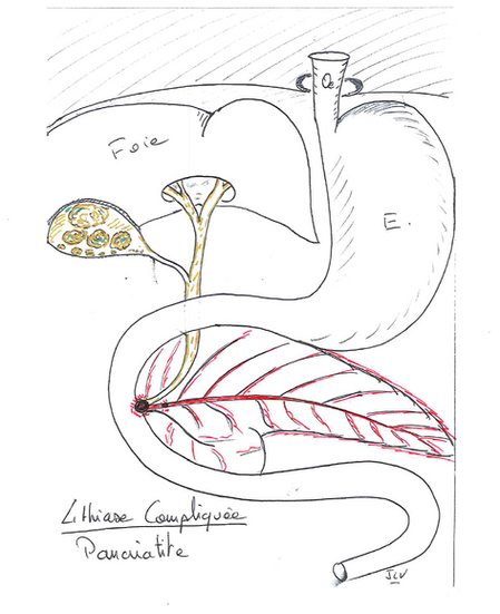 - Pancréatite aiguë : si un calcul bloque la jonction bilio-pancréatique