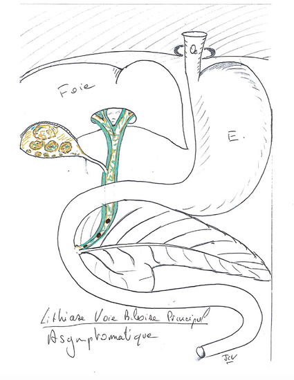 En cas de lithiase biliaire asymptomatique, il n’y a pas d’indication opératoire, ni de surveillance clinique ou biologique